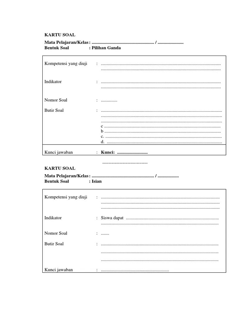Contoh kartu soal uraian format doc microsoft office word administrasi guru from 1.bp.blogspot.com penyusunan kisi kisi dan butir soal ppt .